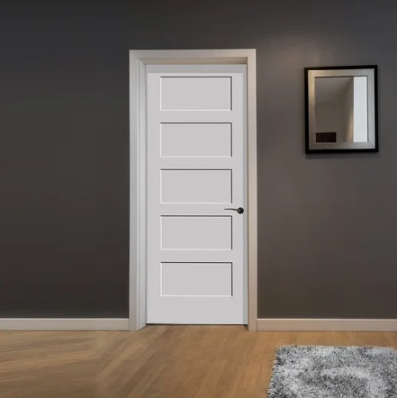 • Stylish 5-panel shaker interior door displaying distinct lines and a range of true-to-life wood finishes, complete with solid core for superior sound insulation and lasting strength.